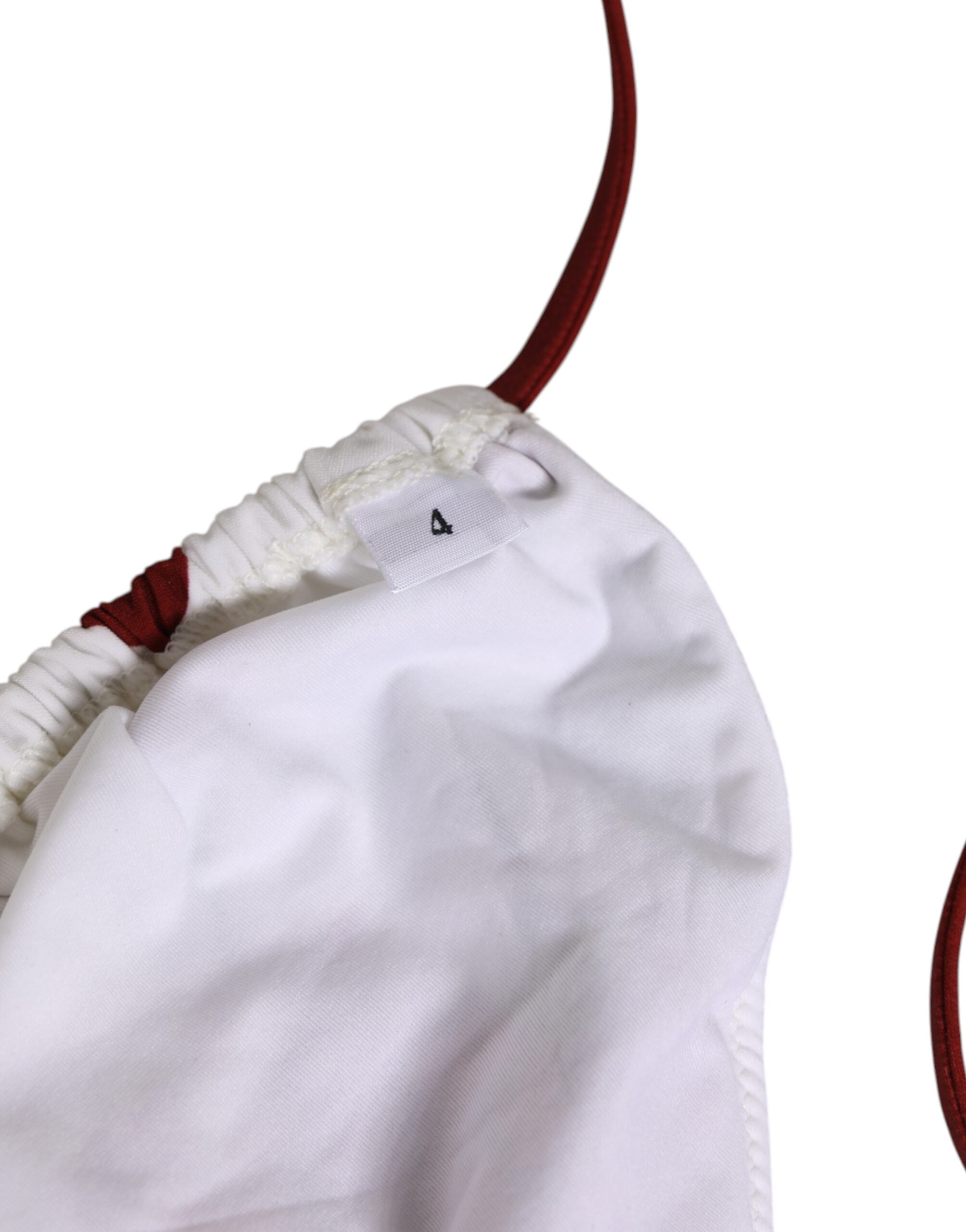 Gorgeous brand new, 100% Authentic Dolce & Gabbana bikini top, featuring a playful red polka dot pattern adorned with vibrant floral prints and a butterfly motif. Designed in a classic triangle style with burgundy adjustable tie straps, it offers both comfort and elegance. Crafted in Italy from premium materials, this piece reflects Dolce & Gabbana’s signature blend of luxury and sophistication.