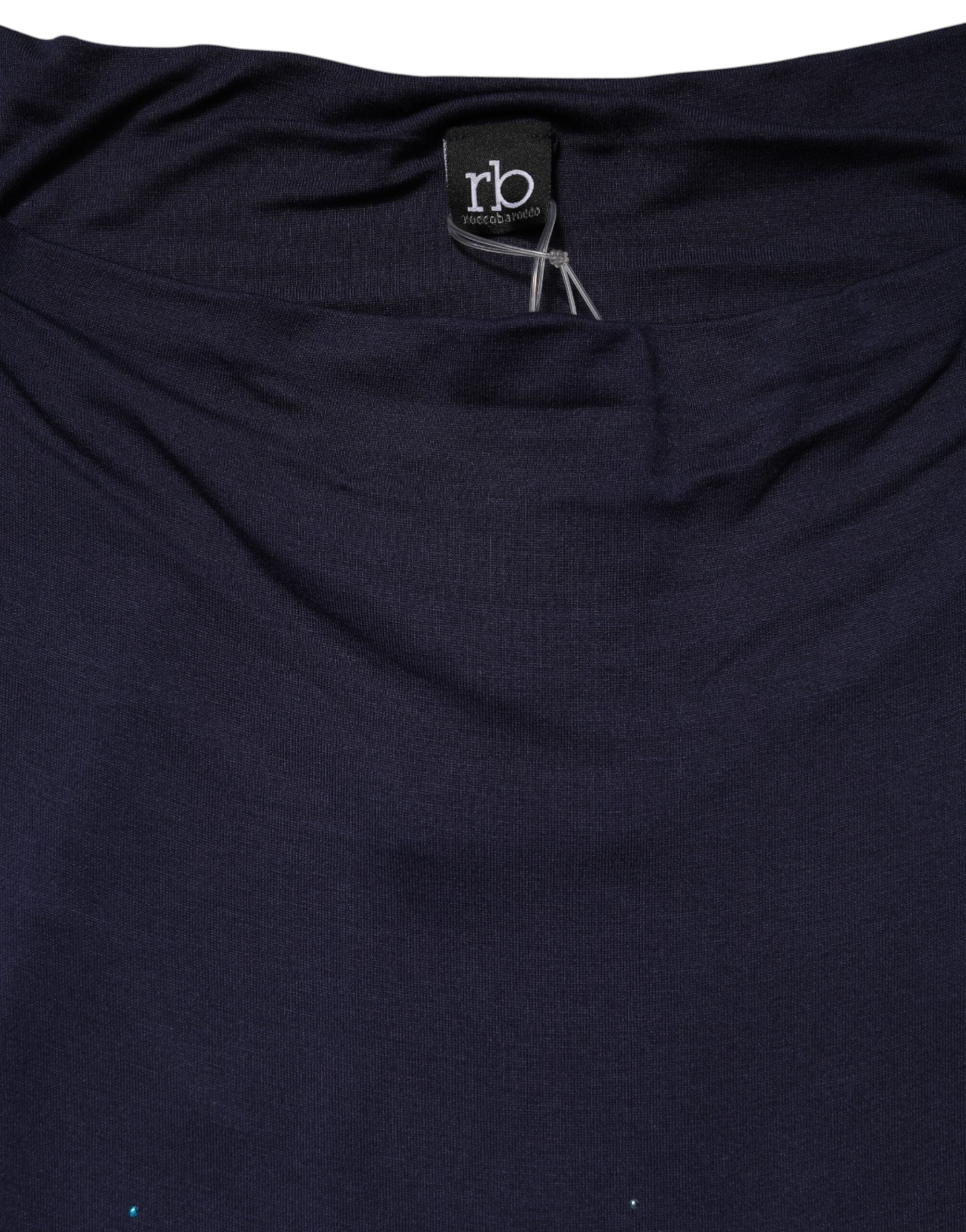Roccobarocco Blue Viscose Embellished Off Shoulder Mini Dress